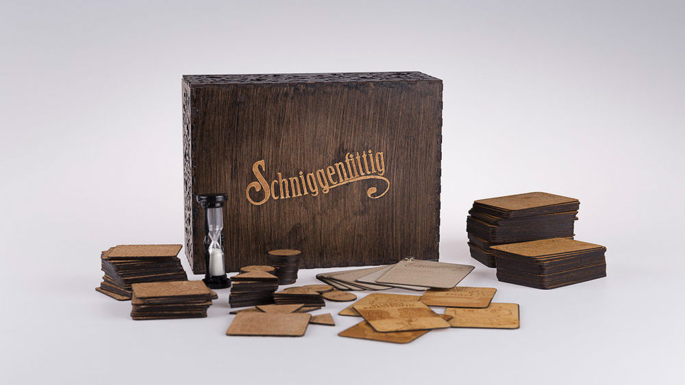 Schniggenfittig is a German a communication playing card game, in which players need to tell a story by the help of different object or word cards. In each round one of the Player takes the position of the moderator who starts and finishes the story by drawing from a stack of moderator cards.